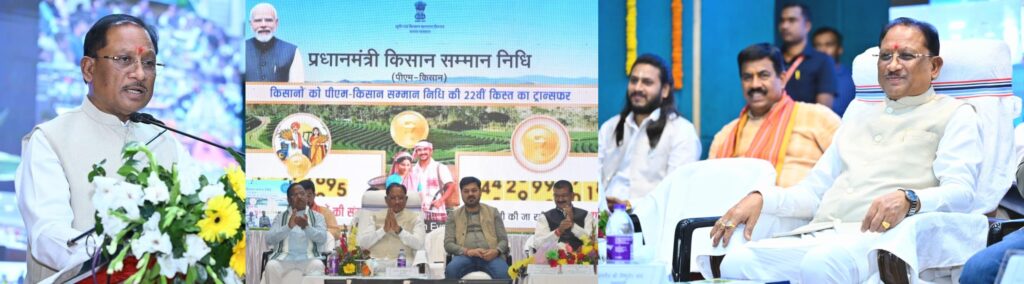 Raipur : Prime Minister Narendra Modi released the 22nd installment of the Pradhan Mantri Kisan Samman Nidhi (PM-KISAN) scheme from Guwahati, the capital of Assam. During this event, an amount exceeding ₹18,640 crores was directly transferred to the accounts of over 90 million farmers across the country. On this occasion, a sum of ₹498.83 crores was transferred to the accounts of 2.471 million farmers in Chhattisgarh.