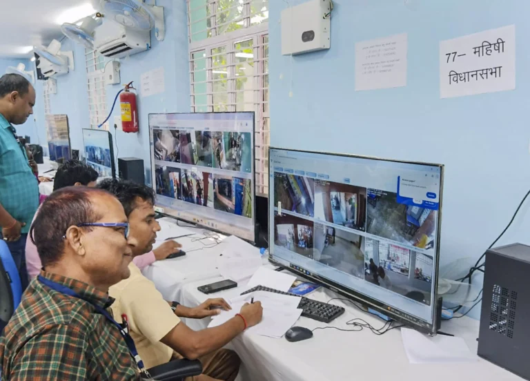 Officials monitor voting during the first phase of the Bihar Assembly election, in the control room operated under the leadership of the District Election Officer. (@CEOBihar/X via PTI Photo) RJD had claimed that electricity supply was being “cut off intermittently”…