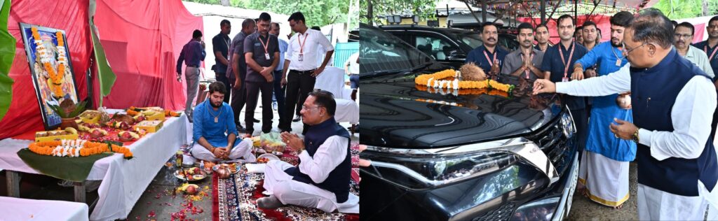 Raipur: Chief Minister Vishnu Deo Sai on Wednesday September 17, 2025 offered prayers to Lord Vishwakarma at his official residence in Raipur to mark Vishwakarma Jayanti. The rituals were performed with full traditional rites.