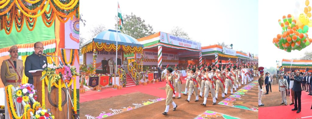 Raipur: On the occasion of Republic Day, Governor Ramen Deka hoisted the national flag and took the salute at the police parade ground in Raipur, the state capital, today. Chief Secretary Vikas Sheel and Director General of Police Arun Dev Gautam were also present during the parade inspection.